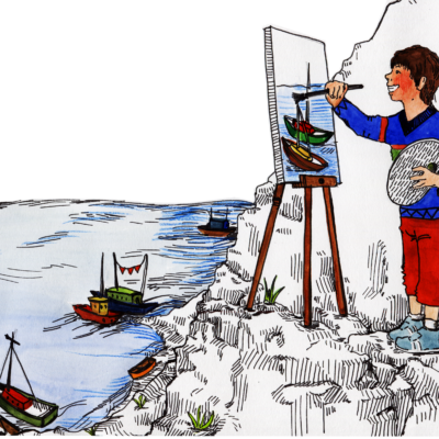 Eine einfache Geschichte über Riesen, die mit Kieseln auf Räder zielen und dabei alle Tiere erschrecken.
